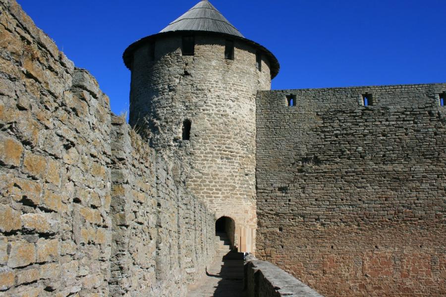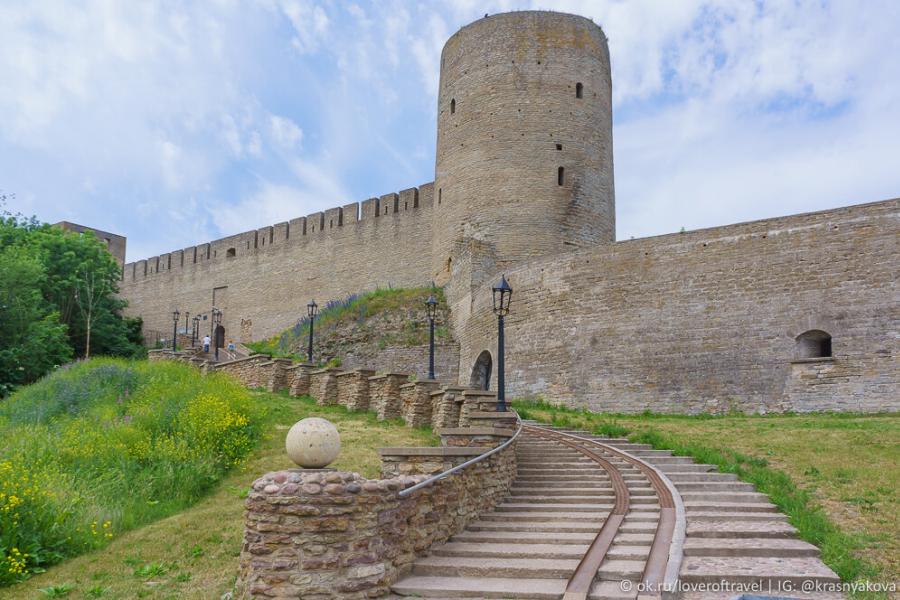 территорию: Передний город и Большой Боярший город, маршрут проходит по стенам и башням, с которых открывается прекрасный вид на Нарвский замок