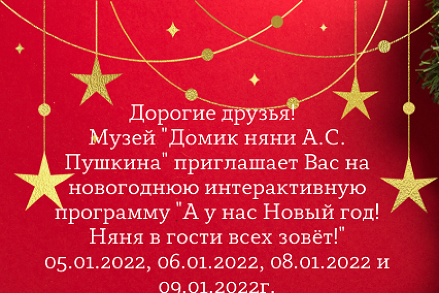 Режим работы музея "Домик няни А.С. Пушкина" на новогодних каникулах