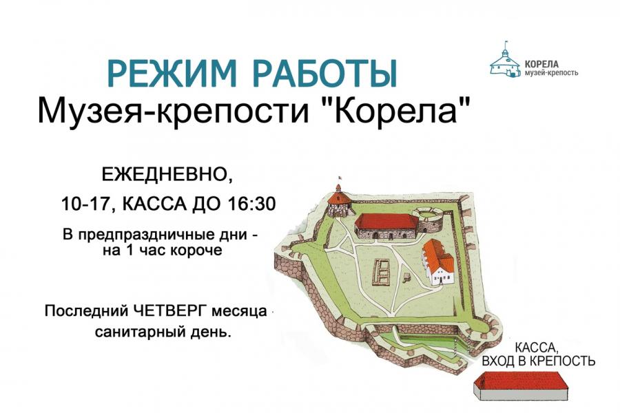 Внимание! С 23 октября попасть на территорию Музея-крепости "Корела" можно через основной вход, ворота со стороны шоссе.