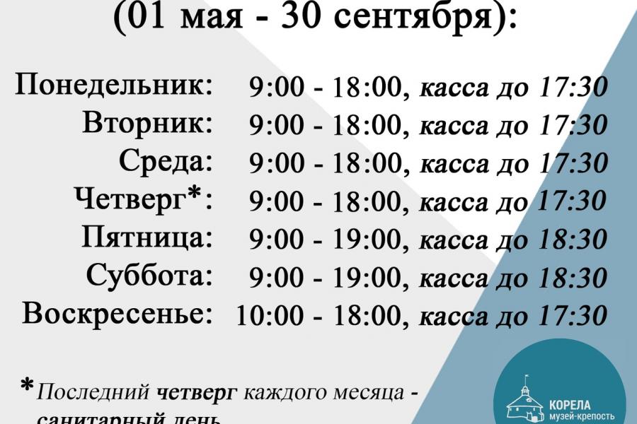 С 21 июня 2021 г. Музей-крепость "Корела" работает по новому режиму! Ждем вас!