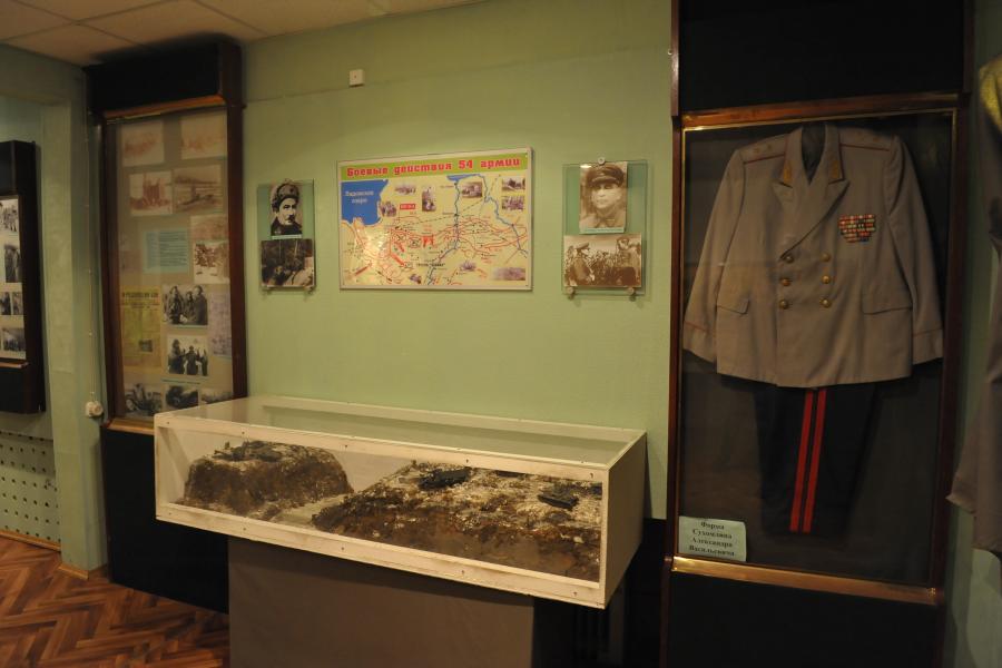Отдельный зал посвящен Великой Отечественной войне. Здесь можно увидеть карты-схемы боевых действий, панораму боя на подступах к Волхову у Валимского ручья, диораму прорыва блокады Ленинграда, фотографии и документы, образцы боевого оружия и материалы о героях Великой Отечественной войны.