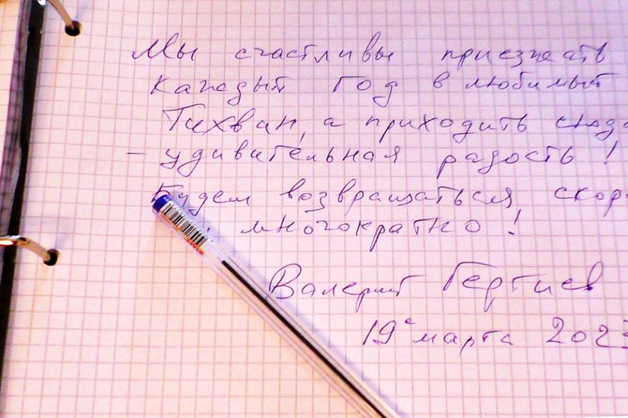 О Доме-музее Н. А. Римского-Корсакова Валерий Абисалович всегда очень тепло отзывается и бывает там каждый раз, как оказывается в Тихвине. Всегда с интересом слушает рассказ о великом композиторе, рассматривает мемориальные предметы.