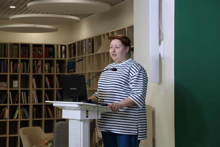 Исполняющий обязанности заведующего - Носкова Александра Олеговна выступила с докладом "Опыт работы в музее с наследием А.С. Пушкина", во время которого рассказала о разработанных музейных программах для детей от 7 до 17 лет.