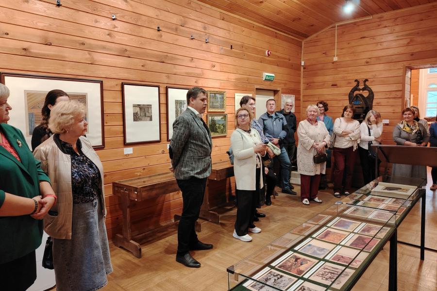 В год 150-летнего юбилея музей-усадьба Н. К. Рериха в Изваре продолжает знакомить посетителей с разнообразными гранями жизни и творчества Николая Рериха. Новая выставка развернута в мезонине усадебного дома – там, где находилась первая мастерская и начиналась художественная жизнь Николая Константиновича. Здесь собраны работы ведущих мастеров петербургской художественной сцены 1910-х годов: Александра Бенуа, Ивана Билибина, Константина Сомова, Анны Остроумовой-Лебедевой и многих других. Как связаны эти имена с Рерихом? О чем переписывались Рерих и Билибин? Как он относился к творчестве своих современников, многие их которых входили в объединение «Мир искусства» - а ведь его руководителем некоторое время был и сам Рерих!