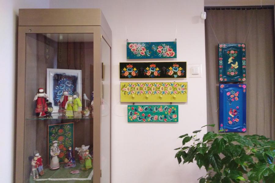 В музее открылась выставка "Окна расписные. Ставенки резные..." талантливого художника Любови Егоровой. На экспозиции представлены авторские работы на основе карельской росписи, а также народные куклы.