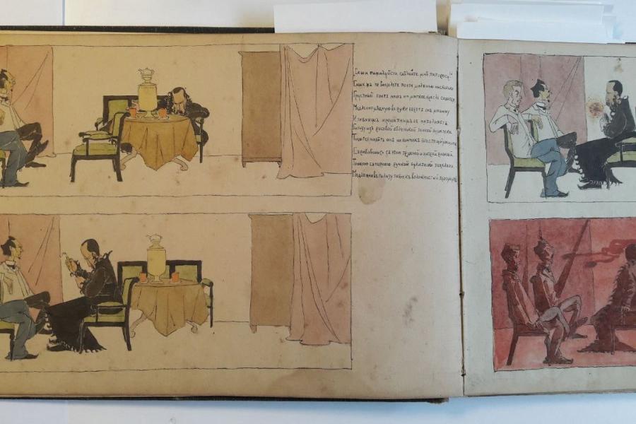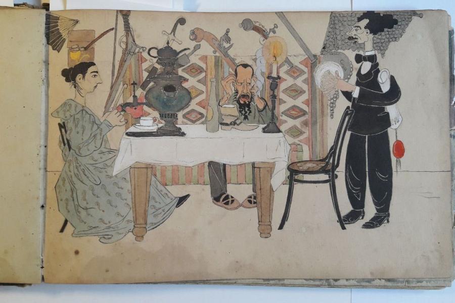 Павел Егорович Щербов (1866-1938) – первый карикатурист, чьи журнальные рисунки экспонировались на художественных выставках. Карикатуры Щербова высоко ценили А.Н.Бенуа, В.В.Стасов, И.Е.Репин, В.А.Серов. В честь 155-летия художника мемориальный музей-усадьба П.Е. Щербова впервые покажет наброски из альбома, который был подарен музею в 2019 году Борисом Габе – внуком русского архитектора и графика, профессора Руфина Михайловича Габе.