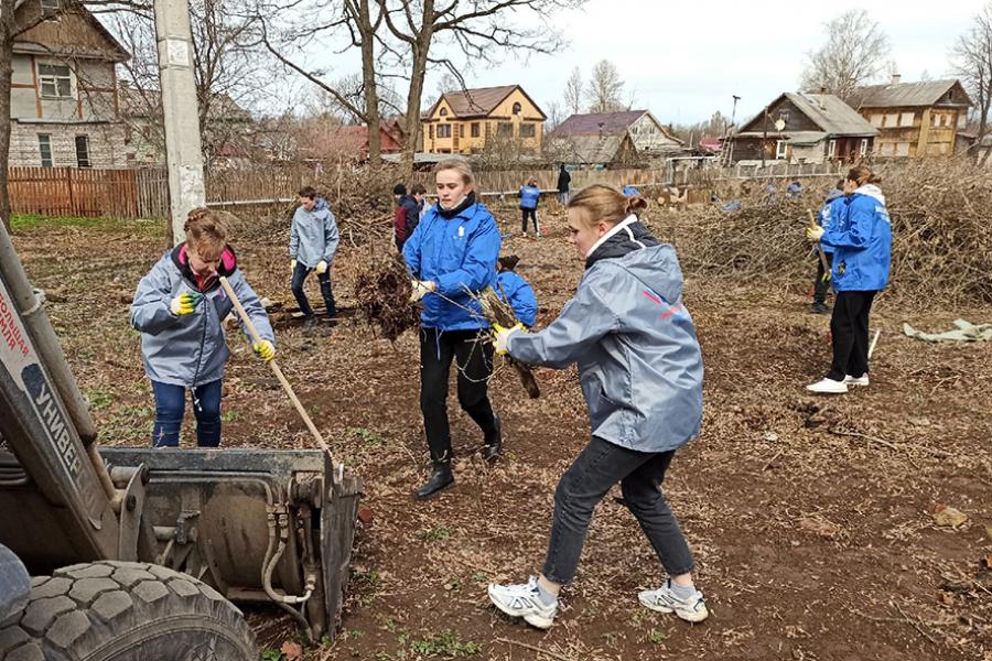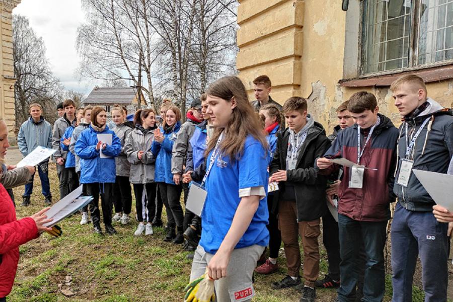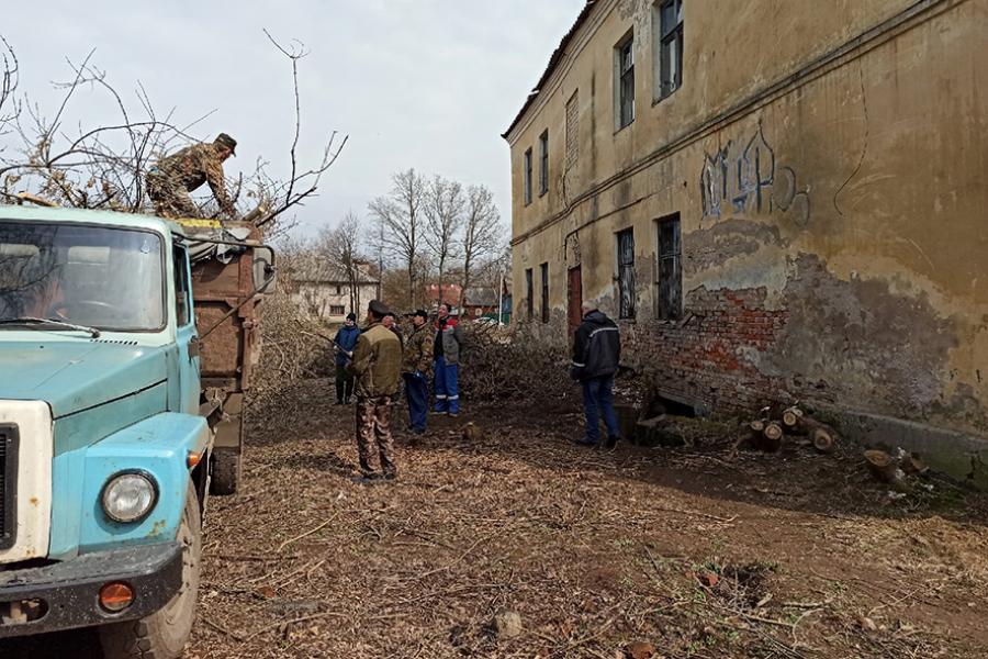 Субботник, посвященный сохранению объектов культурного наследия, проходил в старой части Тихвина на улице МОПРа.