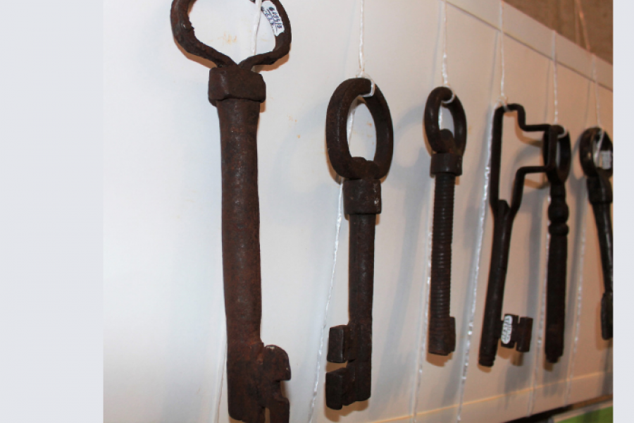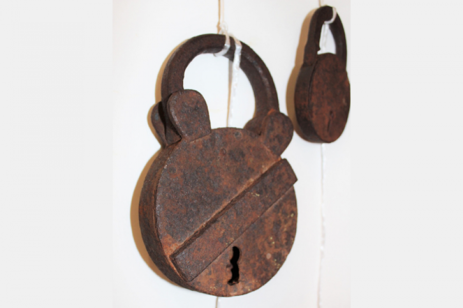 На выставке можно ознакомиться с коллекцией ключей и замков конца XIX – начала ХХ века, которые хранятся в музее. Маленькие и большие, простенькие и фигурные, кованые, есть даже замок со звоном от сундука.