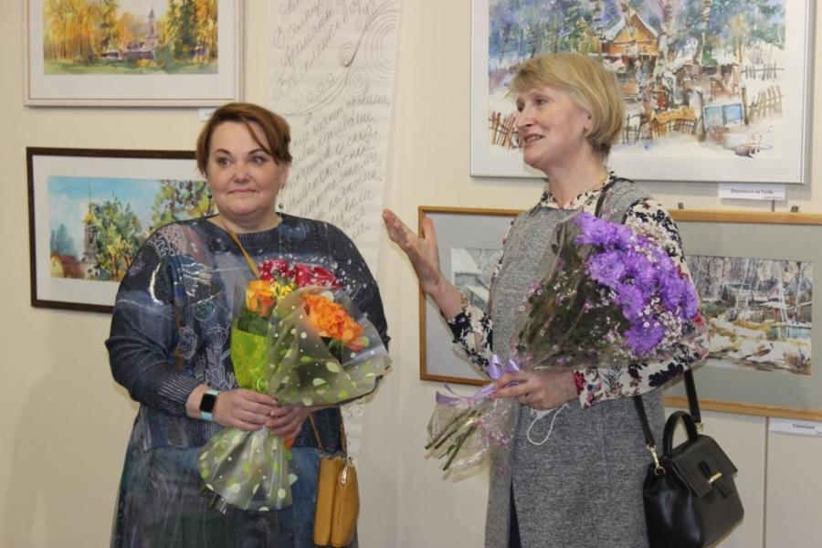 До начала мероприятия гости успели походить по залу, посмотреть выставку. По восхищённым взглядам и одобрительным улыбкам, с которыми посетители обменивались мнениями, обсуждая сюжеты картин, было видно, что выставка всем понравилась.