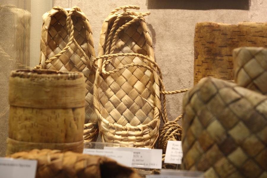 На выставке представлены предметы быта, орудия труда, хозяйственный инвентарь, одежды, в том числе костюмные комплексы, выполненные мастерами Центра коренных народов Ленинградской области под руководством Коньковой О.И. и Романовой Н.Е.