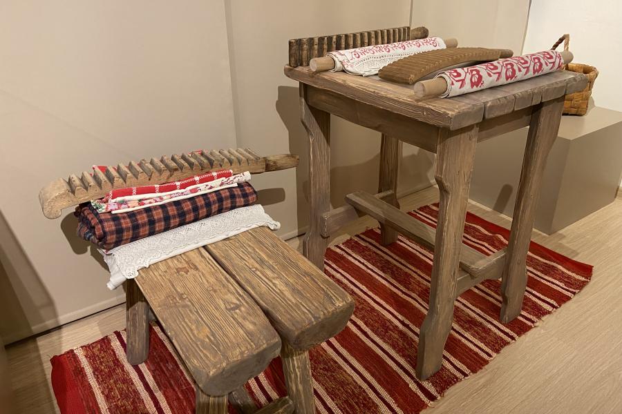 Небольшая оформленная в выставочном зале интерактивная площадка,  позволит посетителям в полной мере ощутить сложности такого знакомого процесса глажки белья, но только не с помощью утюга, а посредством рубеля и скалки.
