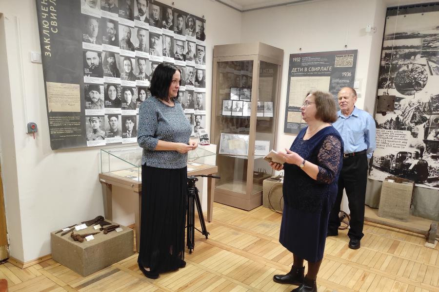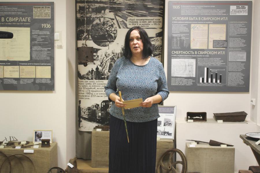 "Свирлаг 1931 - 1937 " - ПЕРВАЯ полномасштабная выставка, посвященная Свирскому исправительно-трудовому лагерю. С экспозицией гостей познакомила М. В. Муравьёва. Марина Владимировна рассказала участникам мероприятия об истории образования и ликвидации Свирлага, о судьбах заключенных, условиях быта и содержания, побегах, лагерной охране и его начальниках. На выставке впервые представлены сведения о детях в Свирлаге.