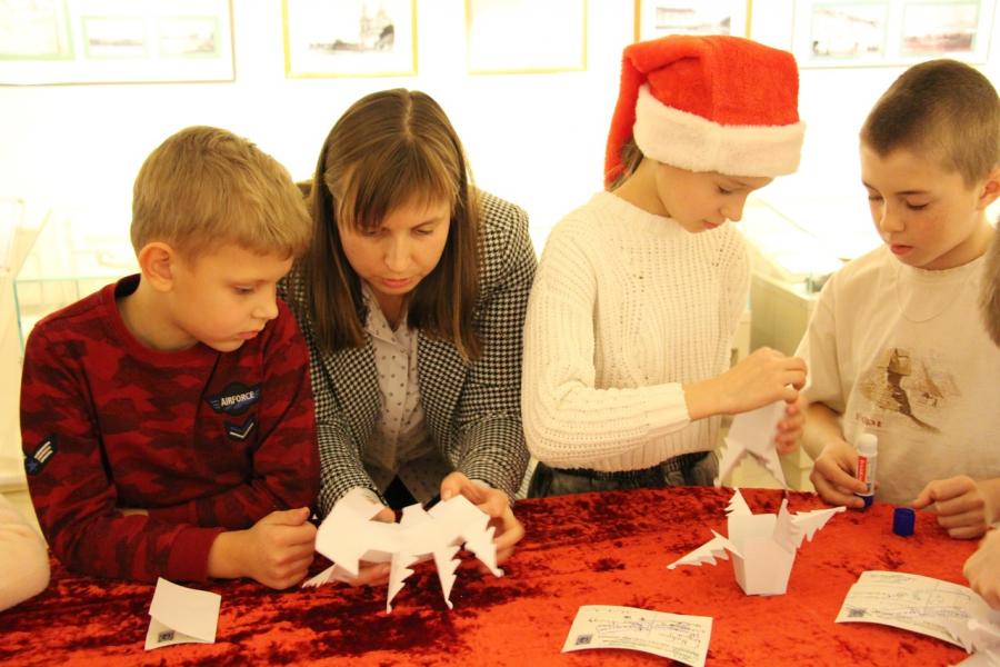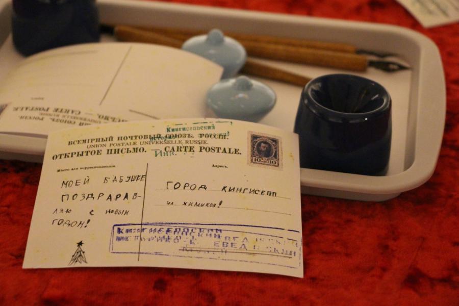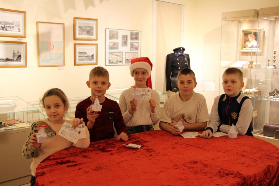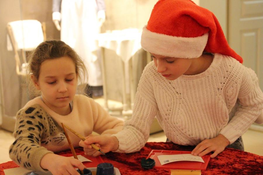 Всего несколько штрихов, и облик выставочного зала приобрел праздничное настроение. Программа тоже пронизана новогодней атрибутикой и предпраздничными приготовлениями: гирлянды с флажками и золоченые орехи, новогодние открытки и поздравления для родных и близких, собственноручно выведенные перьевой ручкой. Вместе с нашими гостями мы приобретаем продукты к праздничному столу в купеческой лавке, а также делаем коробочки для маленьких подарков, получаем положительные эмоции и создаем праздничное настроение! Очень приятно, что наши первые посетители с интересом включились в процесс подготовки к зимним торжествам в старом Ямбурге! С нетерпением ждем следующих сеансов!