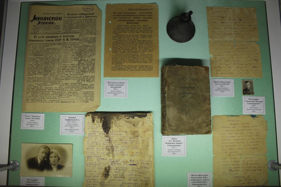 Заключительный раздел юбилейной выставки посвящен Великой Отечественной войне – фронтовые письма, дневники, личные предметы бойцов, подлинные фотографии.