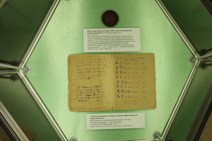 На выставке, посвященной 350-летию со дня рождения Петра I, представлены уникальные экспонаты из фондов Новгородского музея-заповедника. Посетители увидят портрет Петра Первого XVIII в.; гравюры из серии "Петровский Петергоф", солнечные часы 1830-х гг., памятные медали конца XIX - начала XX вв., копию посмертной маски Петра I, печатные издания первой четверти XVIII в. и др.