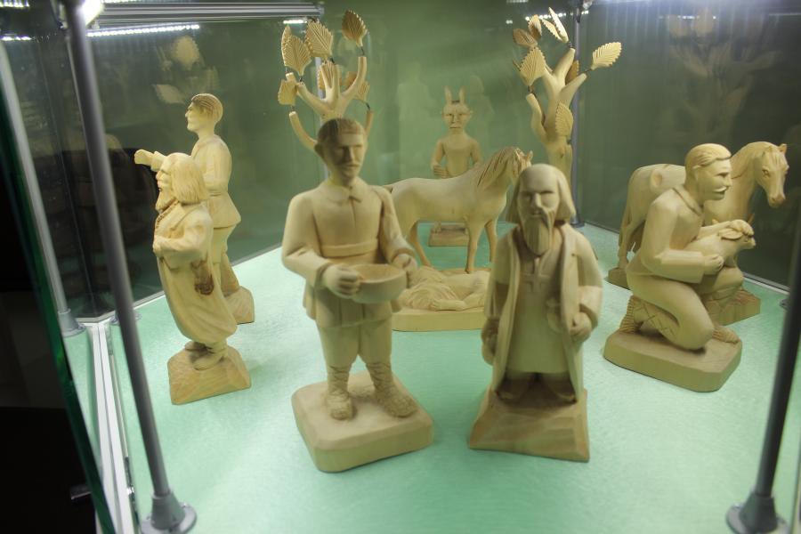 Созданием деревянной резной богородской игрушки занимались мастера в Сергиевом Посаде, а затем в селе Богородское. В состав выставки вошли произведения неизвестного мастера к "Сказке о попе и работнике его Балде". В экспонатах выставки соединились традиции русских художественных промыслов и мир образов, созданный Александром Пушкиным.