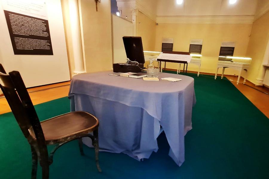 Посетители через предметы и документы того времени знакомятся с историей песни, текст которой был написан в 1943 году фронтовым поэтом Павлом Шубиным.