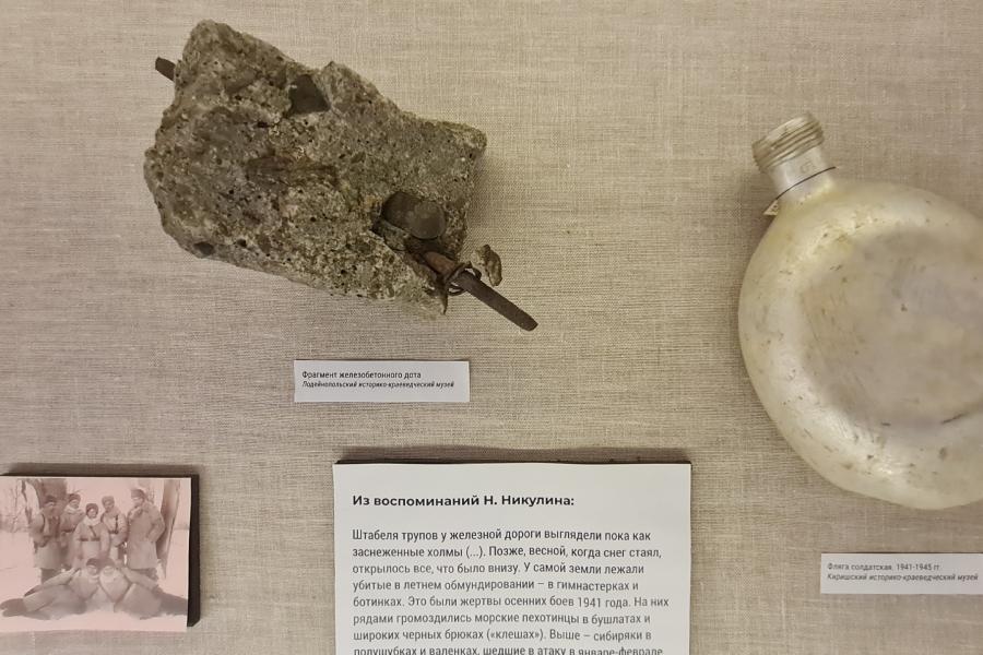 Гости увидят предметы военной повседневности - части обмундирования, личные вещи бойцов Ленинградского и Волховского фронтов, например, портсигар 1941 года. Представлены и документальные источники, например, листовки, которые разбрасывали на оккупированных территориях немцы.